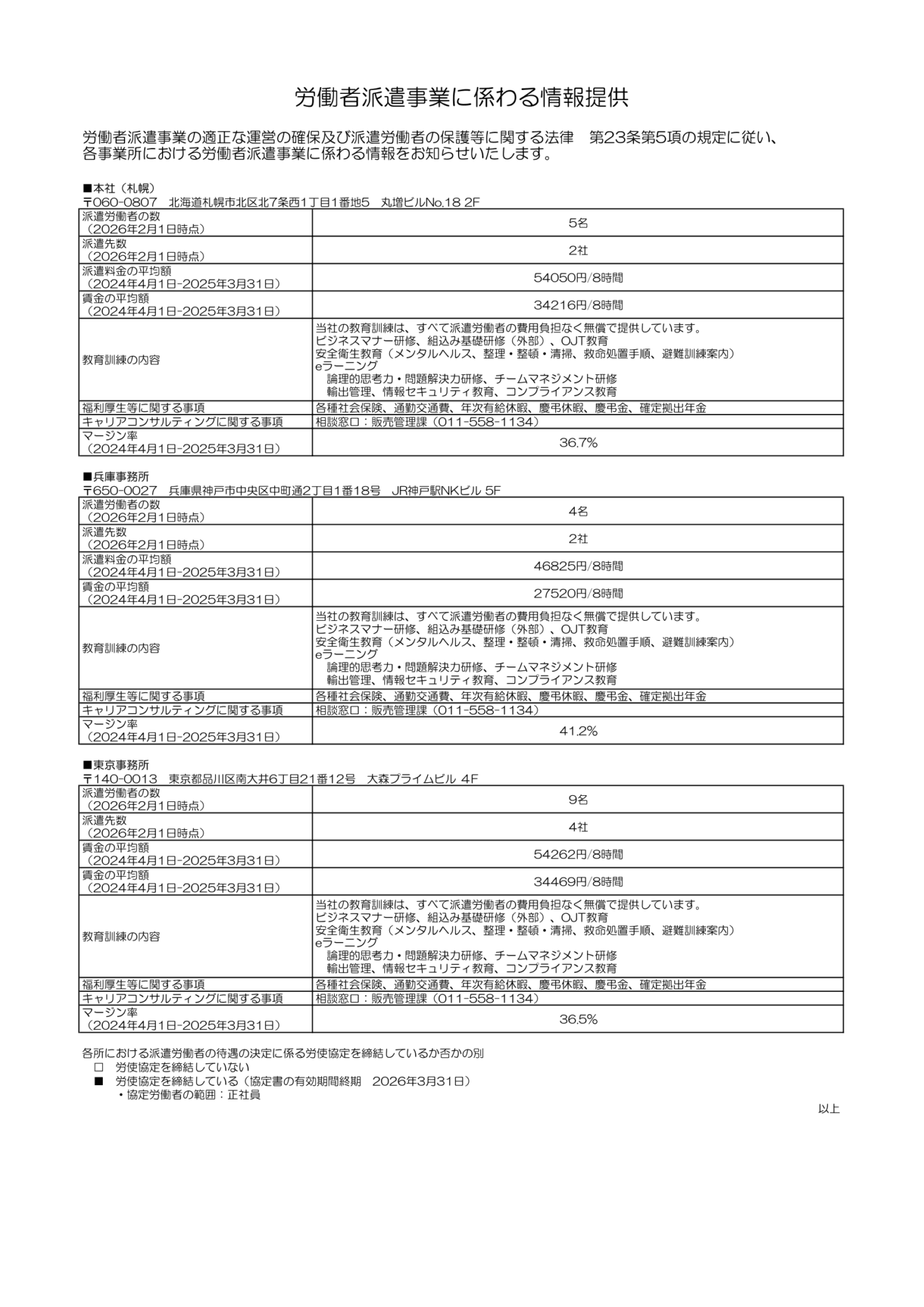 労働者派遣事業に係わる情報提供