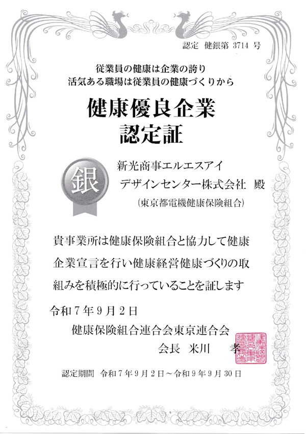 当社は、健康保険組合連合会東京連合会に「健康企業宣言」を行い、令和7年9月2日付で健康優良企業として「銀の認定」を取得しました。